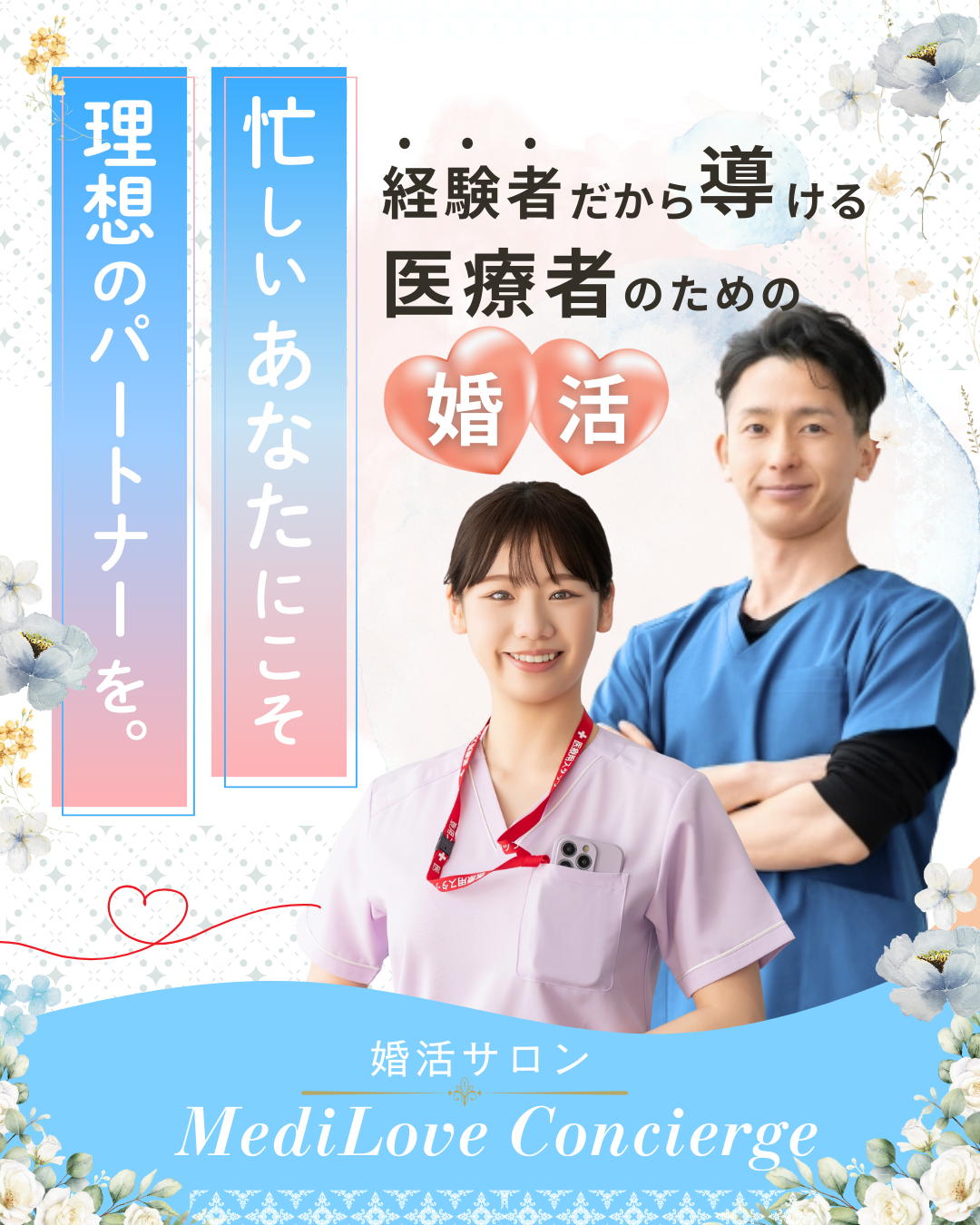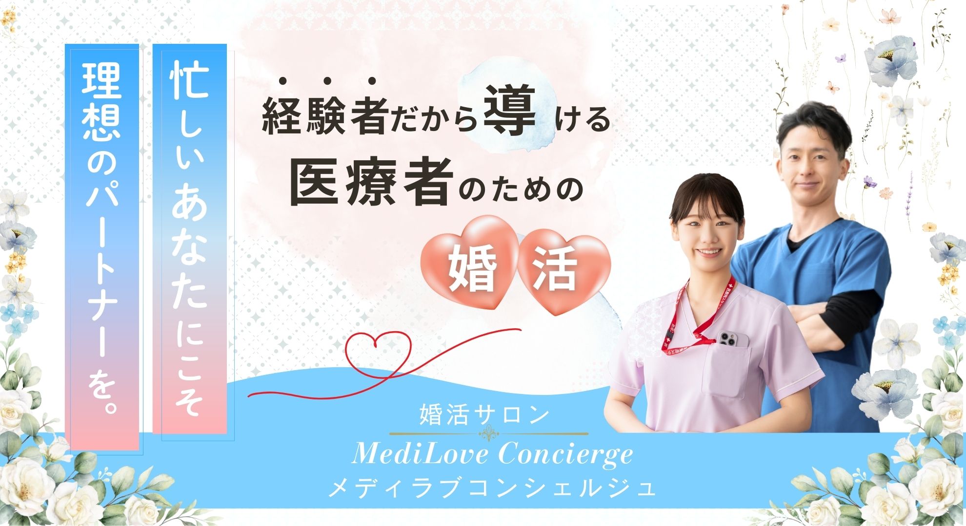 婚活サロン MediLove Conciergeは、結婚相談所で出会い、成婚退会した医療従事者夫婦が運営しています。